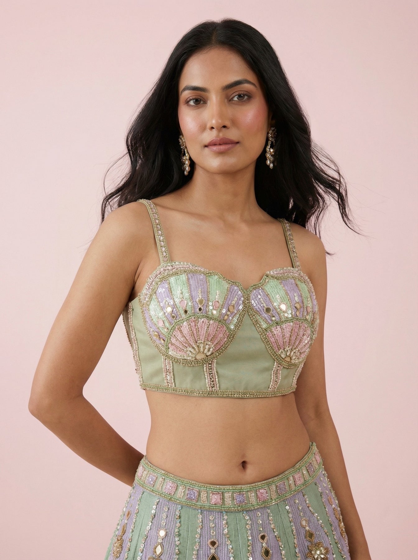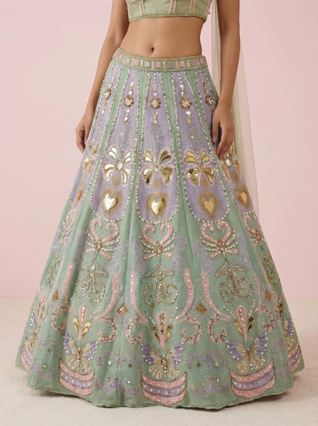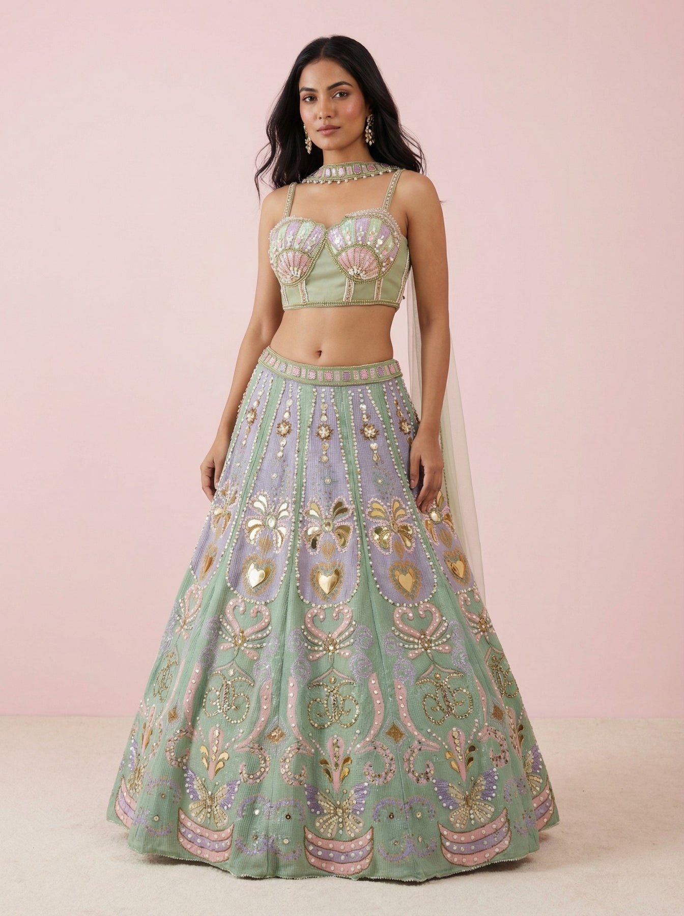 • Multicolor Net Crop Top Lehenga