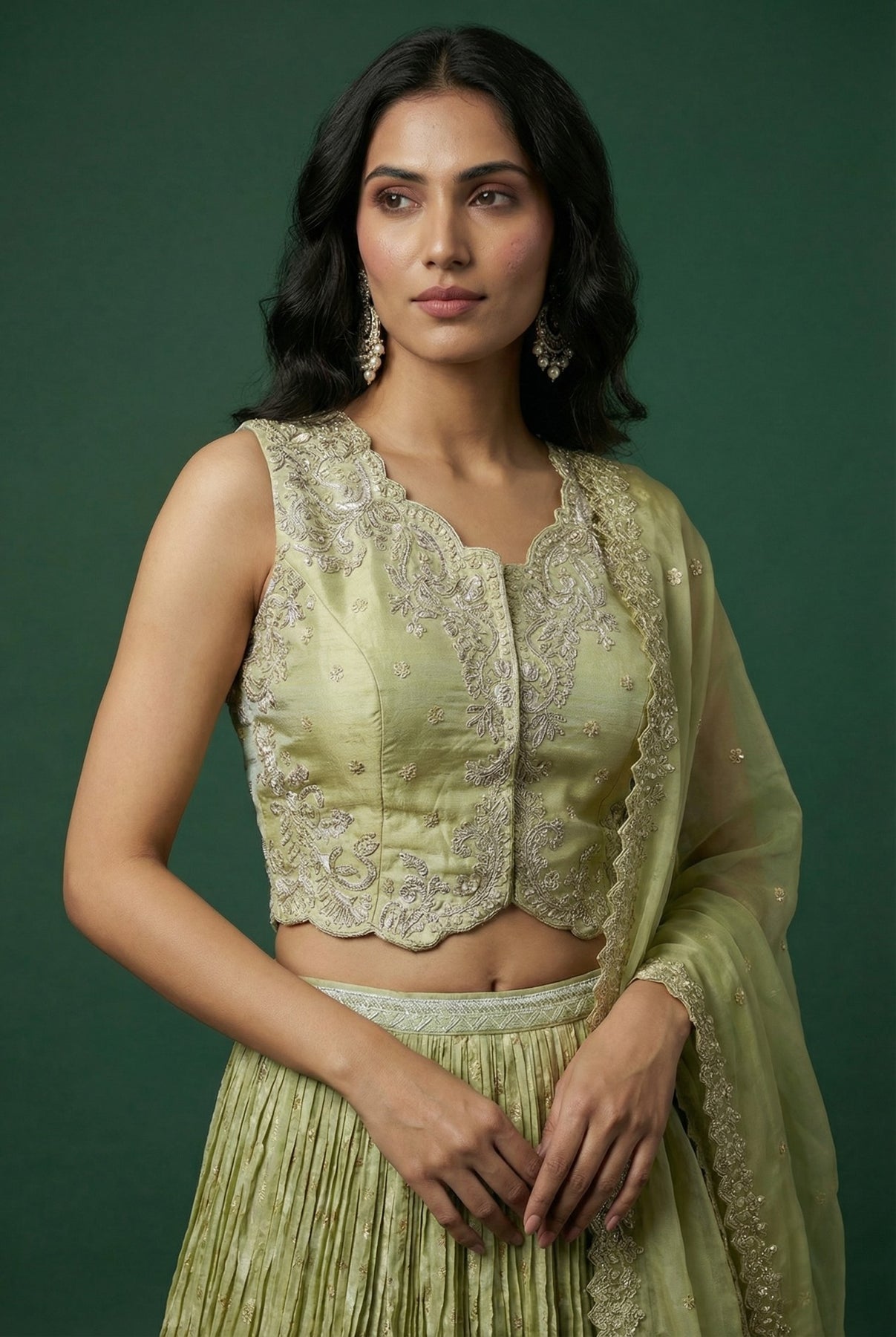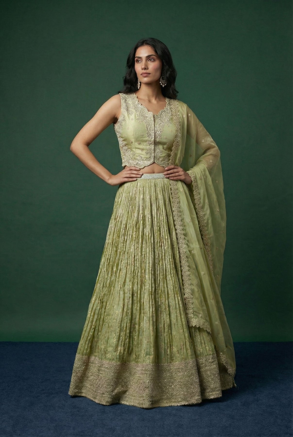 • Light Green Festive Banarasi Lehenga