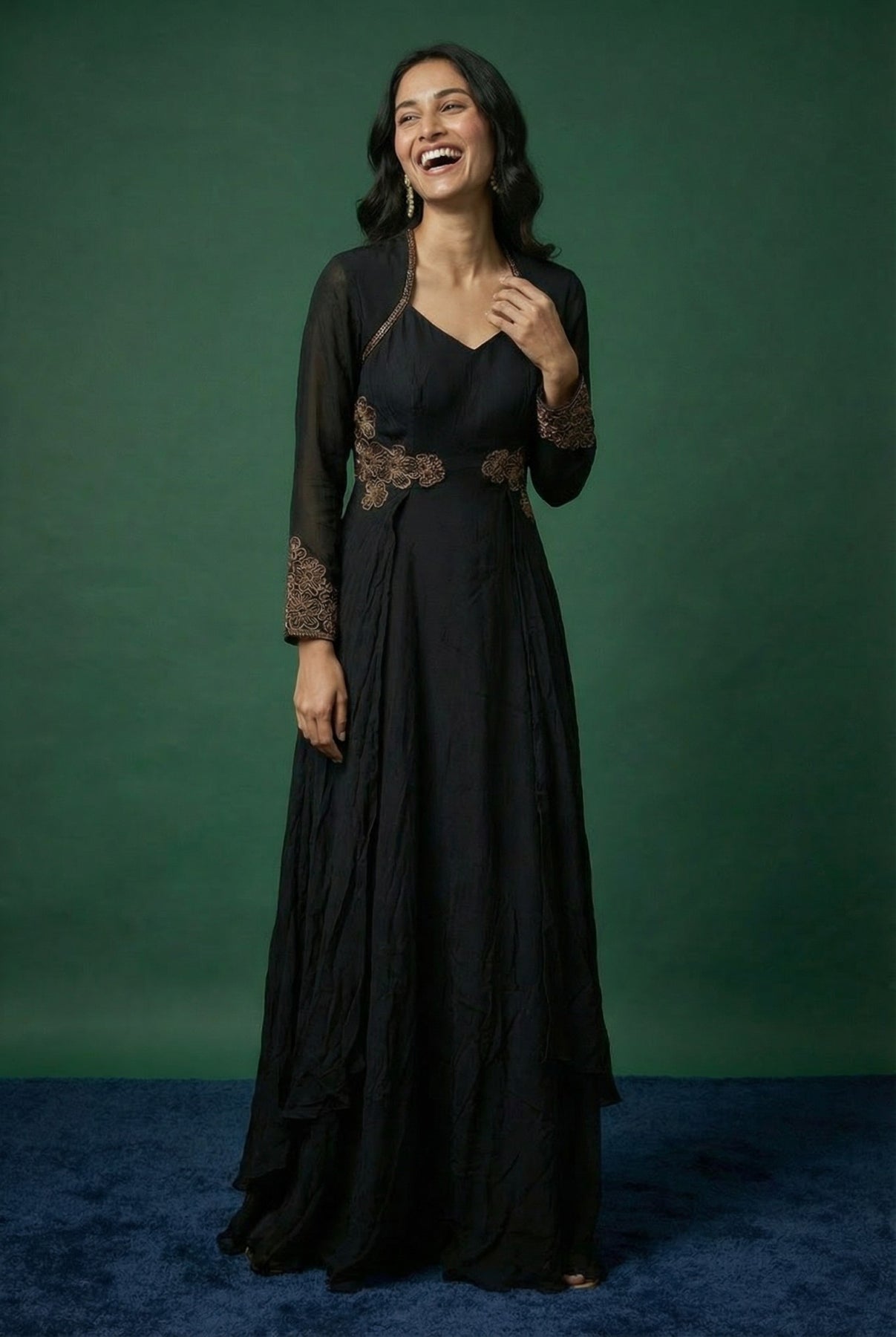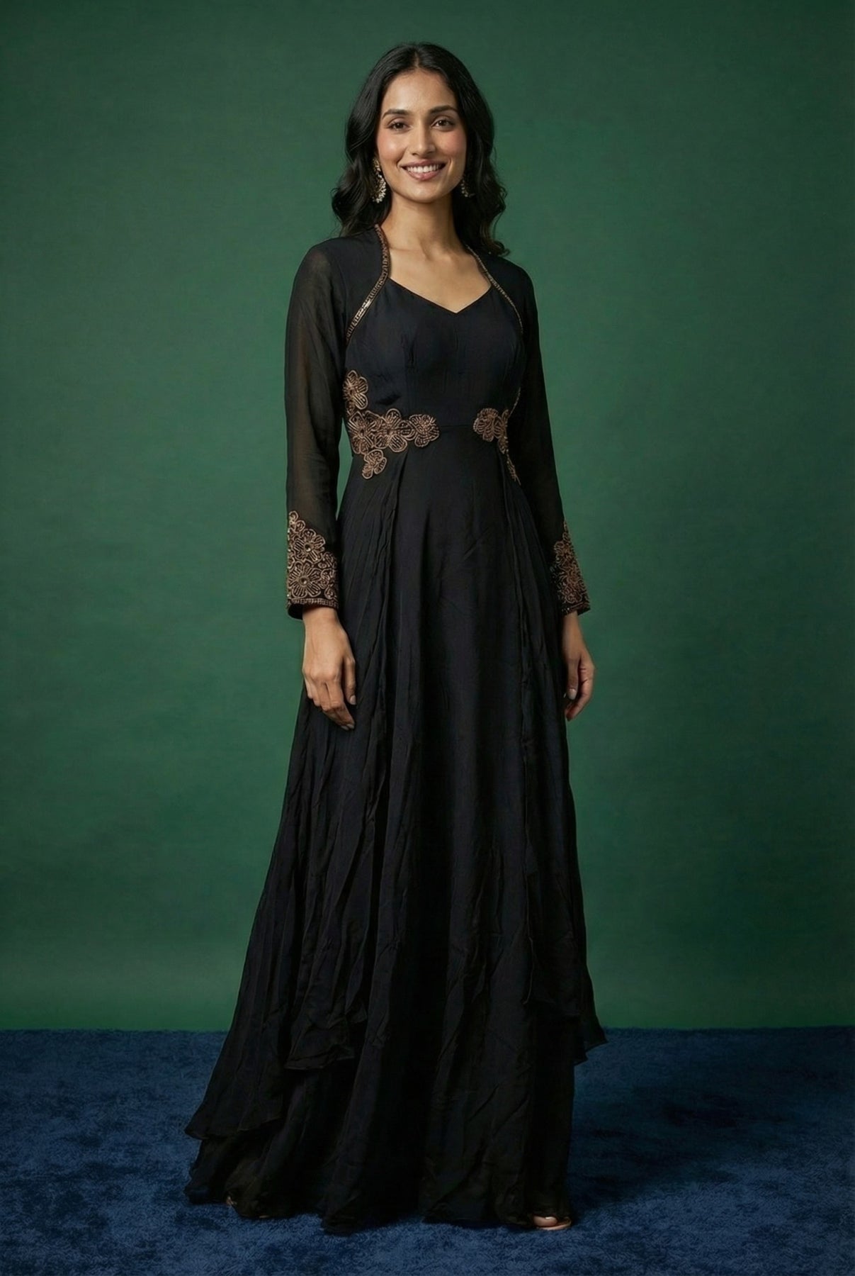 • Black Chinnon Embroidered Anarkali Gown