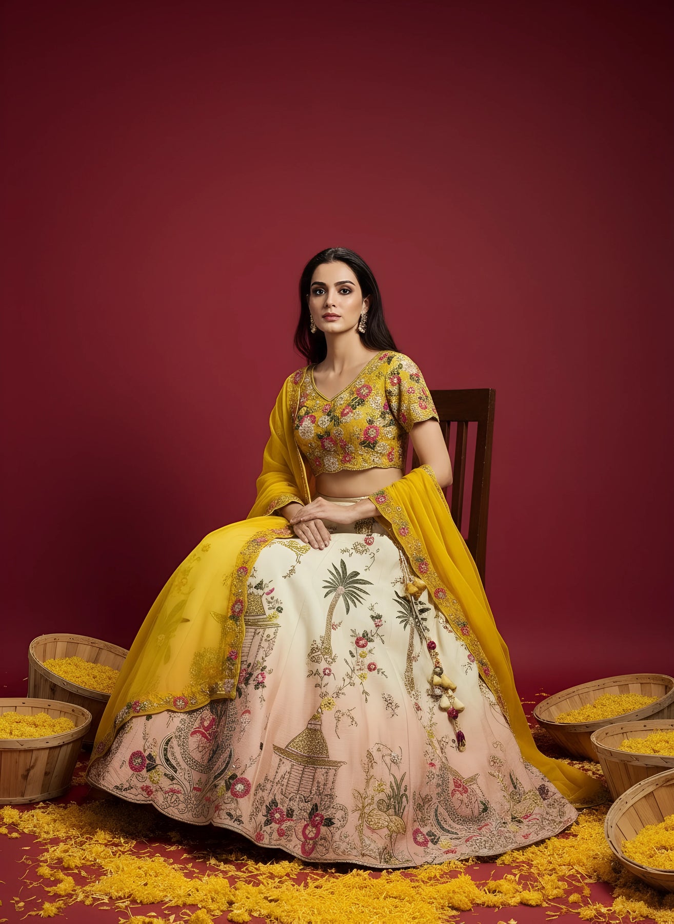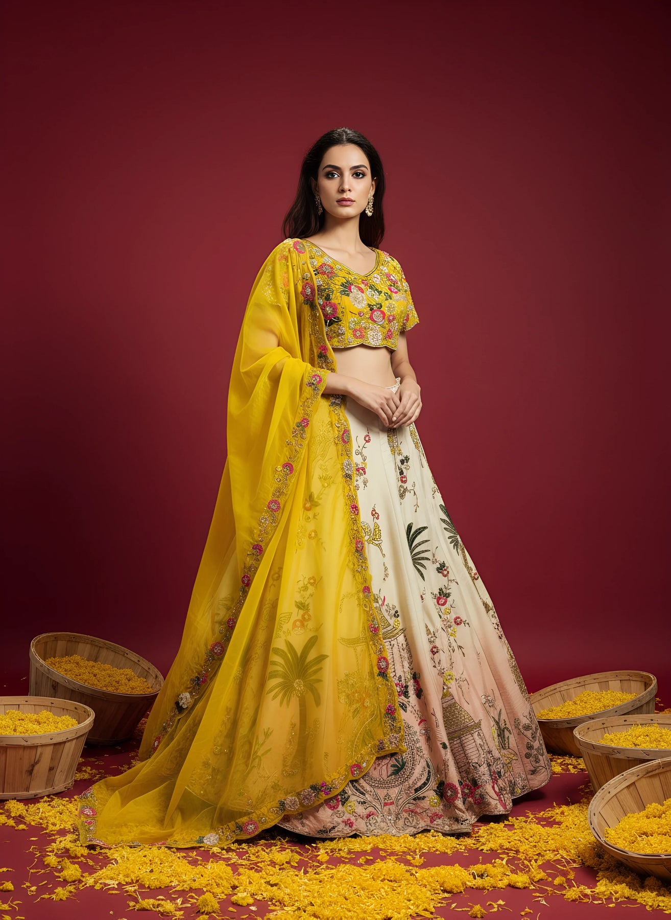 • Get ready to turn heads and make a statement at your next semi-formal event with this elegant, versatile lehenga set!