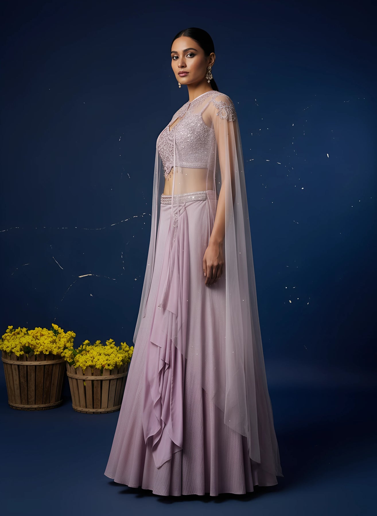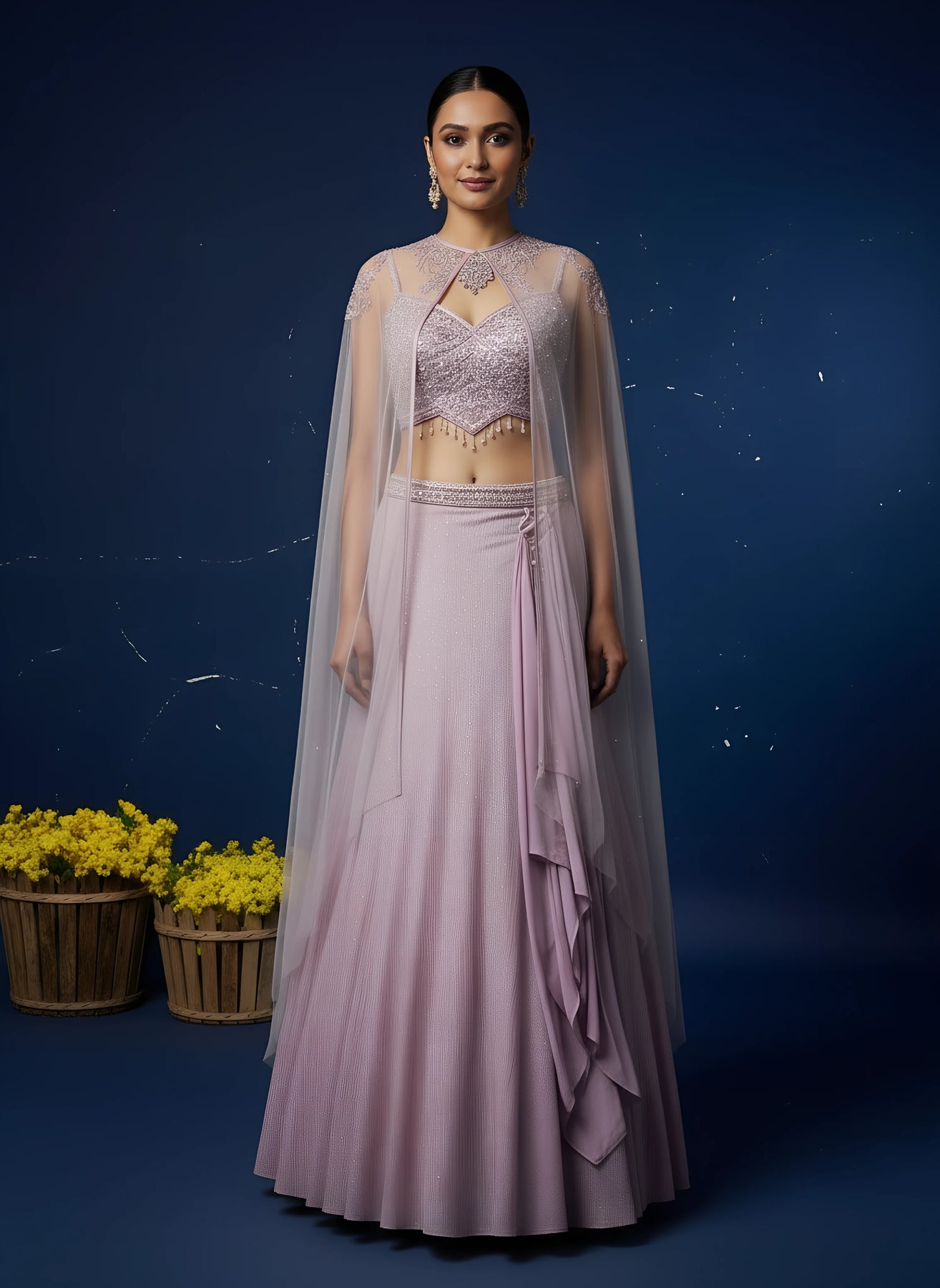 • Lilac Designer Fish Cut Lehenga With Shrug