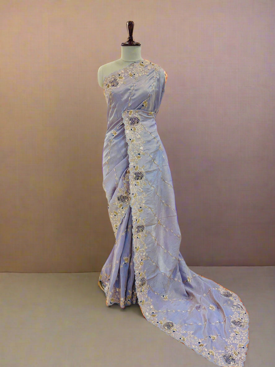 • Lilac Tissue Silk Pittan Work Saree
